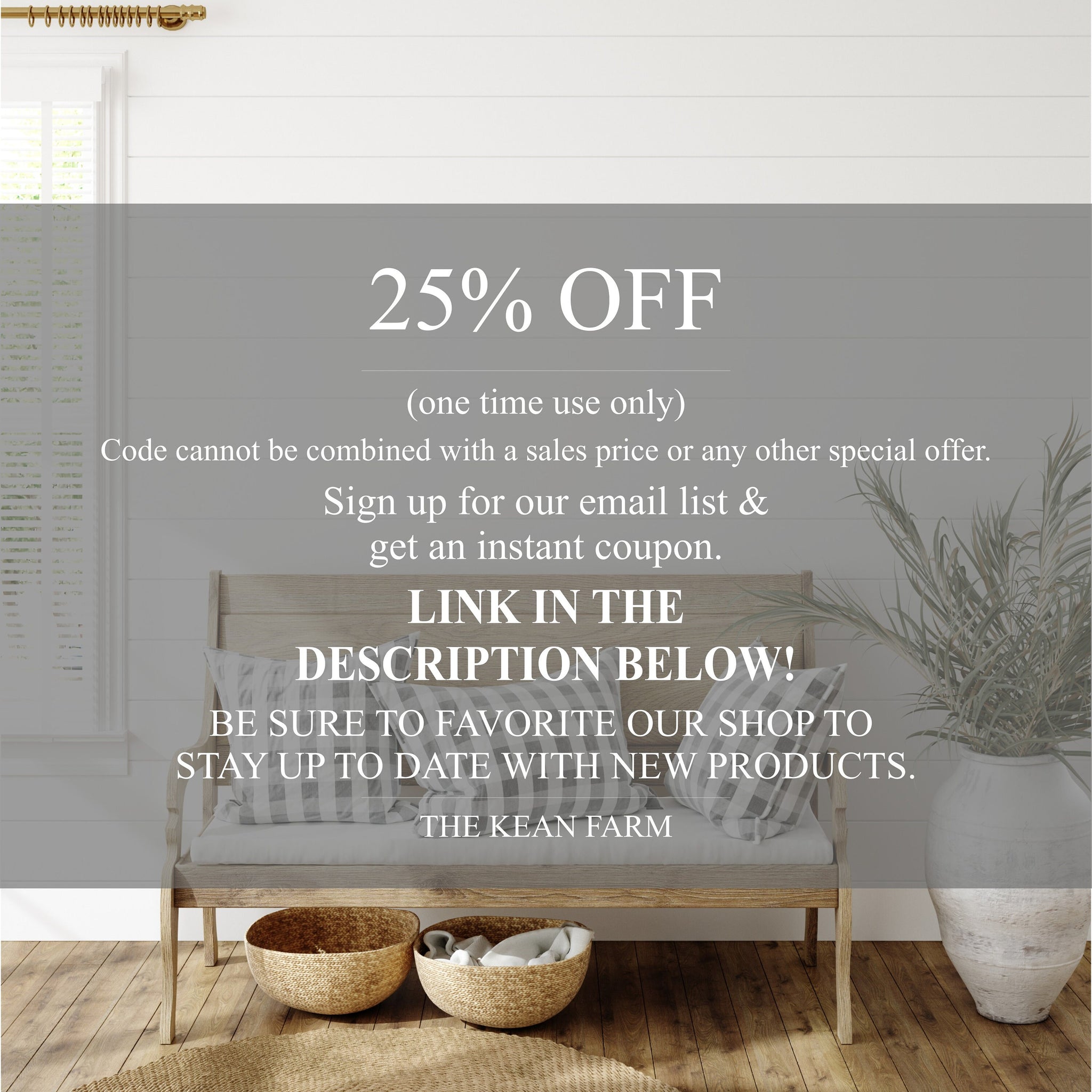 Instant 25% off code when you sign up for our email list. Copy and paste this link into your web browser... www.thekeanfarm.com